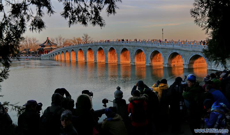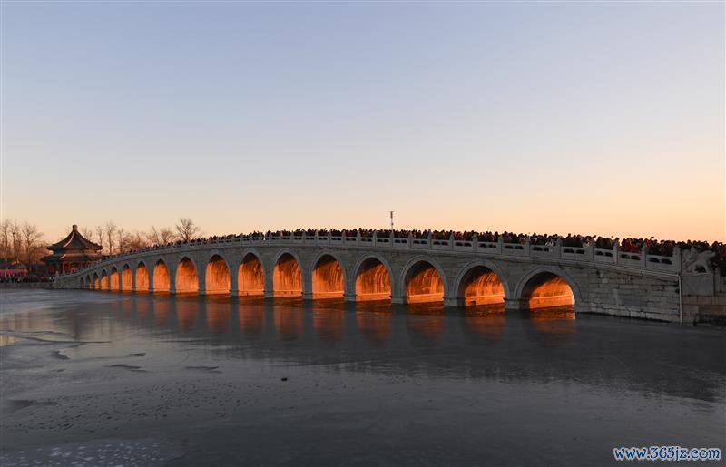 12月21日是冬至气节,北京颐和园十七孔桥的“金光穿洞”景不雅劝诱了广博旅客与照相爱重者不雅赏拍摄。